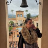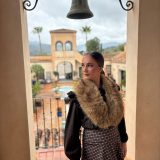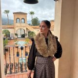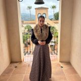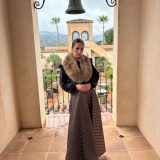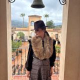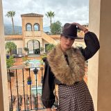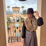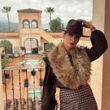 Combinado con sombrero del mismo tono y cuello de pelos.