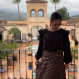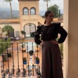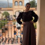 Conjunto de falda «Impetu» disponible en burdeos, marrón y verde, combinada con blusa del mismo tono, con dos volantes. PRECIO DEL CONJUNTO FALDA+BLUSA, NO SE VENDE POR SEPARADO.