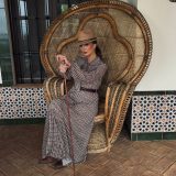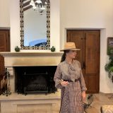 Combinado con sombrero y cinturón de piel fino.